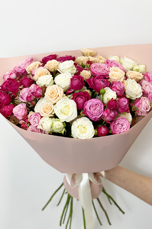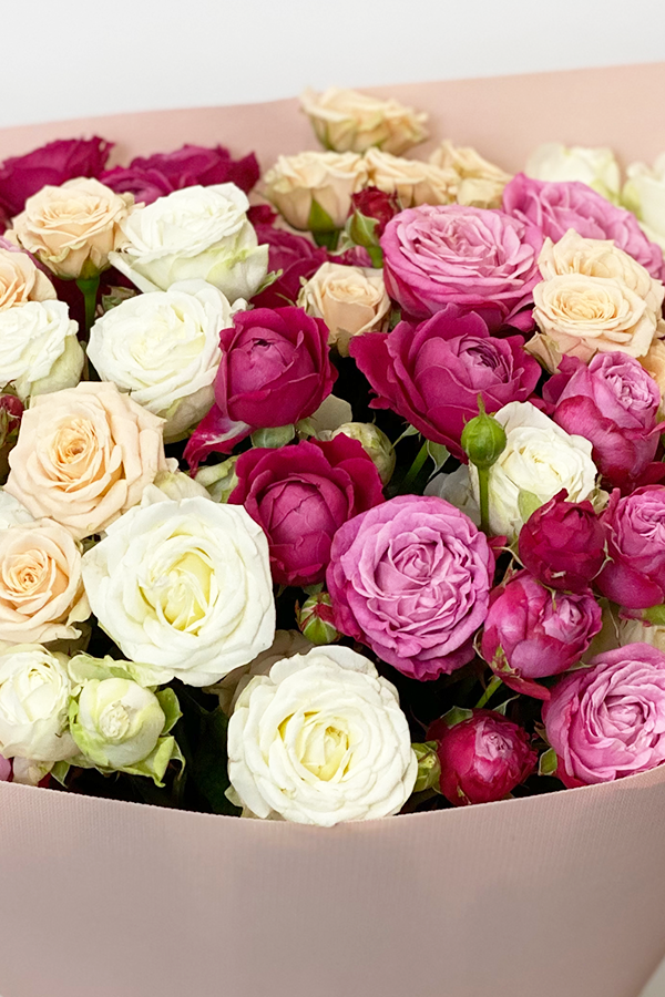 Букет з кольорових кущових троянд